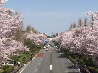 青空に街路の桜満開・花吹雪が映える週末が到来